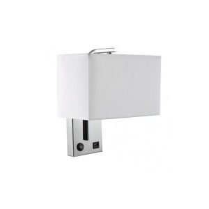 APLIQUE 1XE27 Y PUERTO USB AGATHA CROMO/PAN.BLANCA 27X25X15CM CON INTERRUPTOR