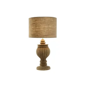 • LAMPARA SOBREMESA MADERA YUTE 41X41X82 TALLADA