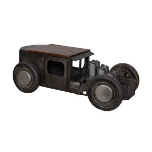 COCHE MESA DE CENTRO BOTELLERO METAL MADERA ACABADO ARTESANAL GRIS 170x70x50