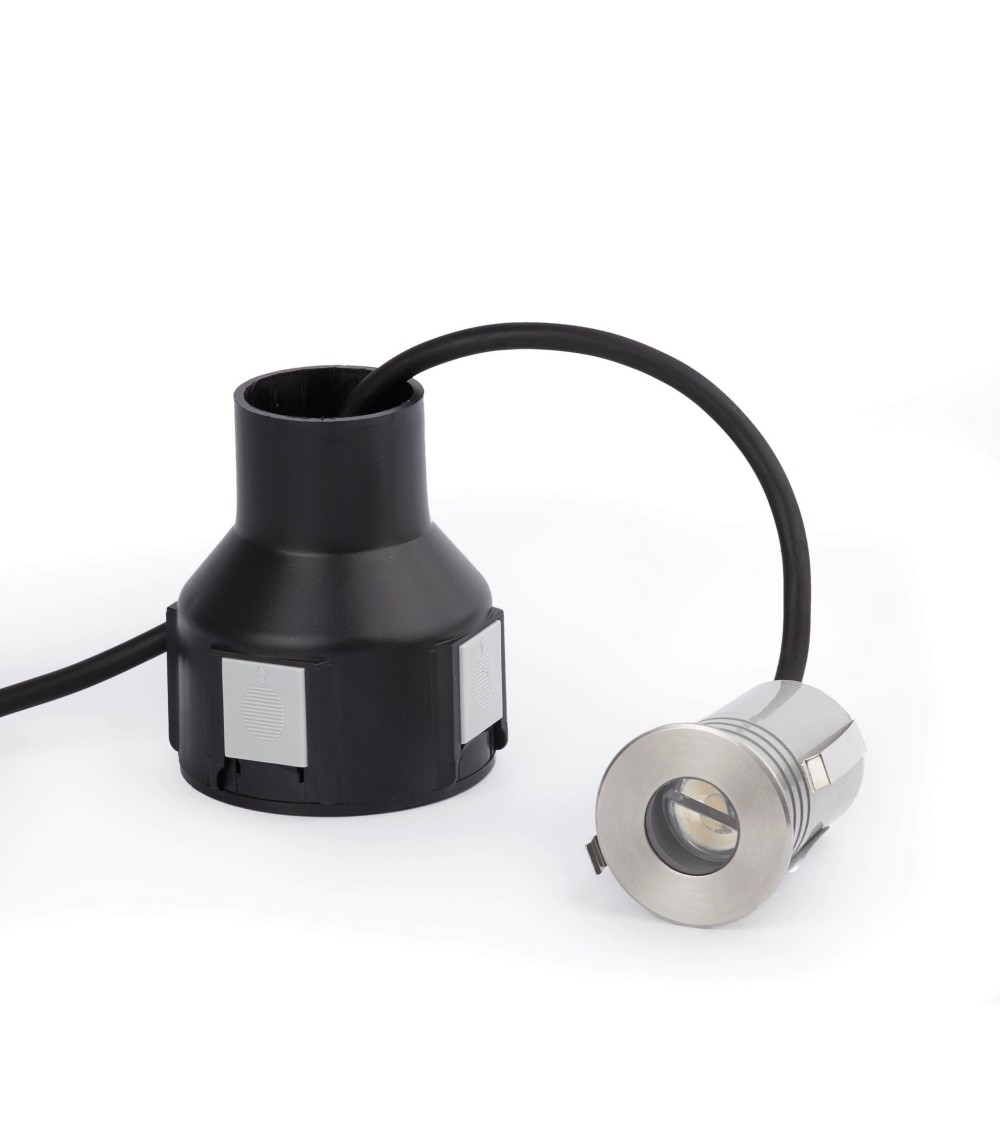 Empotrable con tecnología LED para iluminación exterior y luz cálida, fabricado en acero inoxidable 316 y aluminio con difusor de cristal templado. Incluye la caja de ABS para empotrar. La fuente de iluminación es HIGH POWER LED 2W 3000K 77Lm. Tiene una resistencia a los golpes de IK08. Permite el paso rodado hasta un máximo de 1400Kg. Este empotrable de exterior es ideal para bañar la pared.