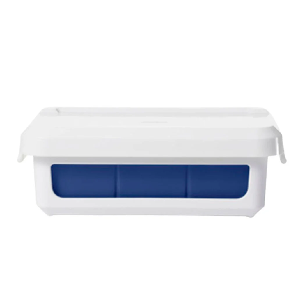 - La tapa evita que los cubitos cojan malos olores y que se puedan apilar cosas encima.