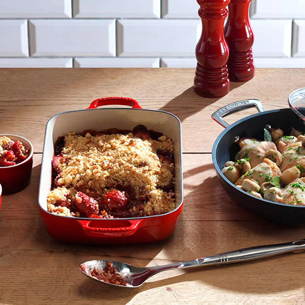 La Bandeja rectangular de hierro fundido Le Creuset es una fuente ideal para cocinar todo tipo de recetas, tanto dulces como saladas. Y su precioso diseño la hace perfecta para presentarlas directamente en la mesa.