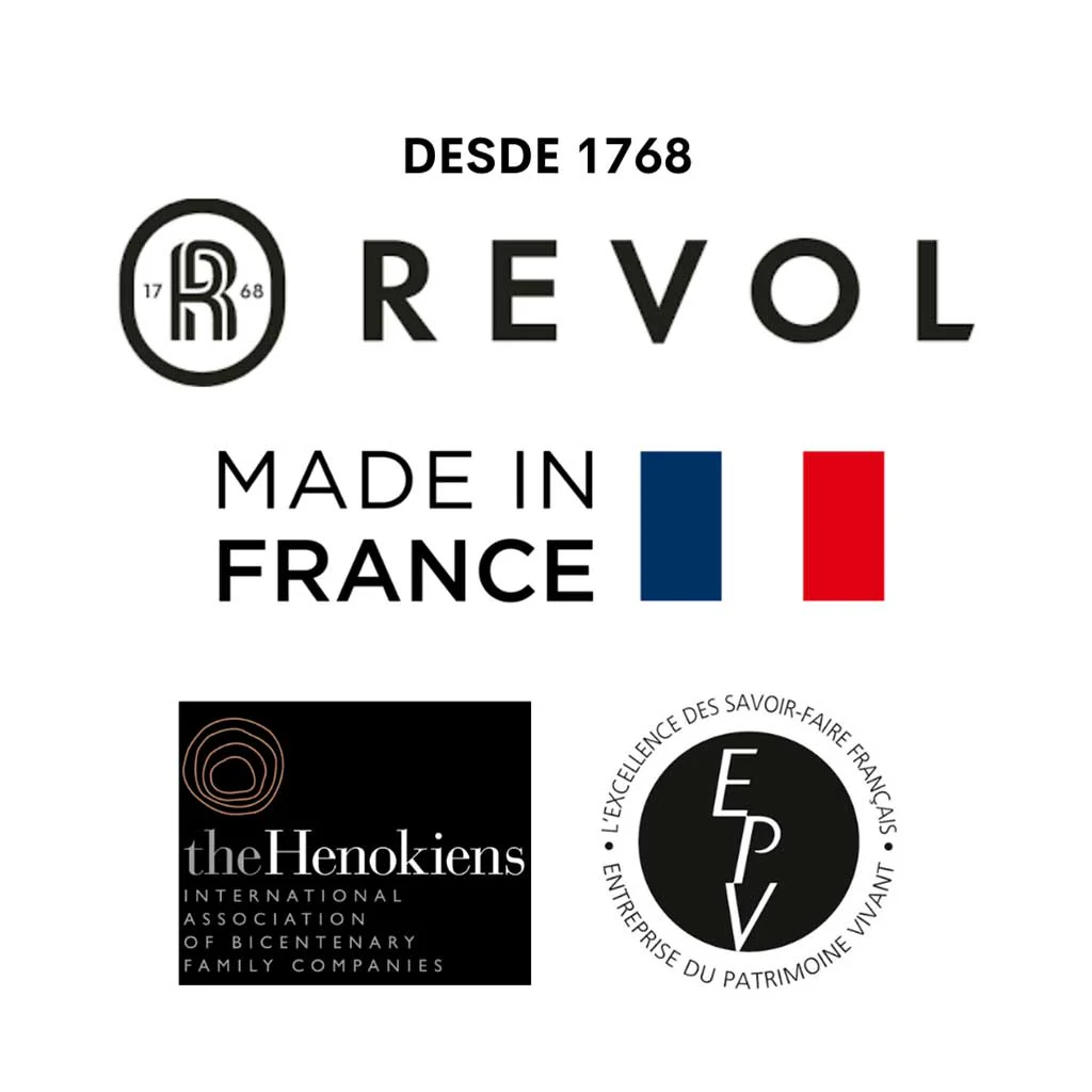 Fundada en 1768, Revol es una empresa familiar que ha sido gestionada por la misma familia durante nueve generaciones. Revol fabrica todos sus utensilios en Francia, en su fábrica ubicada en el valle del Ródano. Su proceso de fabricación combina un alto grado de innovación con una gran parte de trabajo artesanal para conseguir piezas únicas que ofrecen un rendimiento espectacular en la cocina. Además todos los materiales usados en la fabricación de la porcelana son 100% naturales y respetuosos con el medio ambiente.