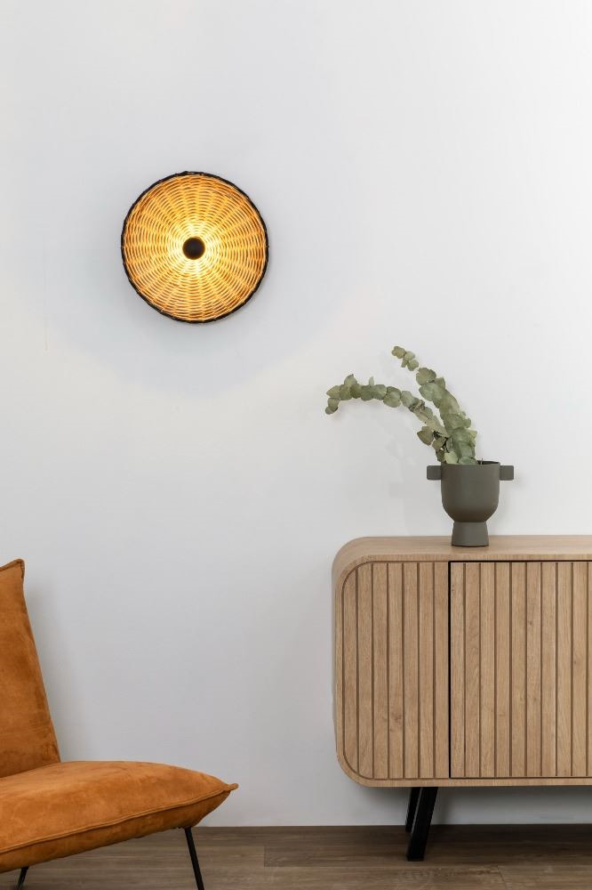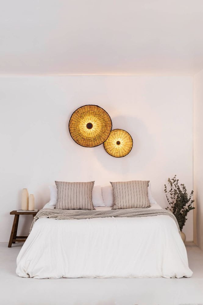 COSTAS es una colección de lámparas diseñada por Alex&Manel Lluscà que se caracteriza por las pantallas de ratán. Disponible en dos medidas, el diseño deja a la vista la bombilla, en una mezcla de estilo minimalista y mediterráneo. Está pensada para la iluminación interior de todo tipo de espacios, pero en especial para el sector contract. Esta es la versión con un diámetro de 40cm y 7cm de alto. COSTAS permite crear islas en el techo y en la pared.