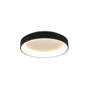 Plafón de techo realizado en metal y aluminio acabado negro mate arenado. Difusor opal de silicona. 75W LED. 3,252 lm. 3.000 K. DIMABLE.