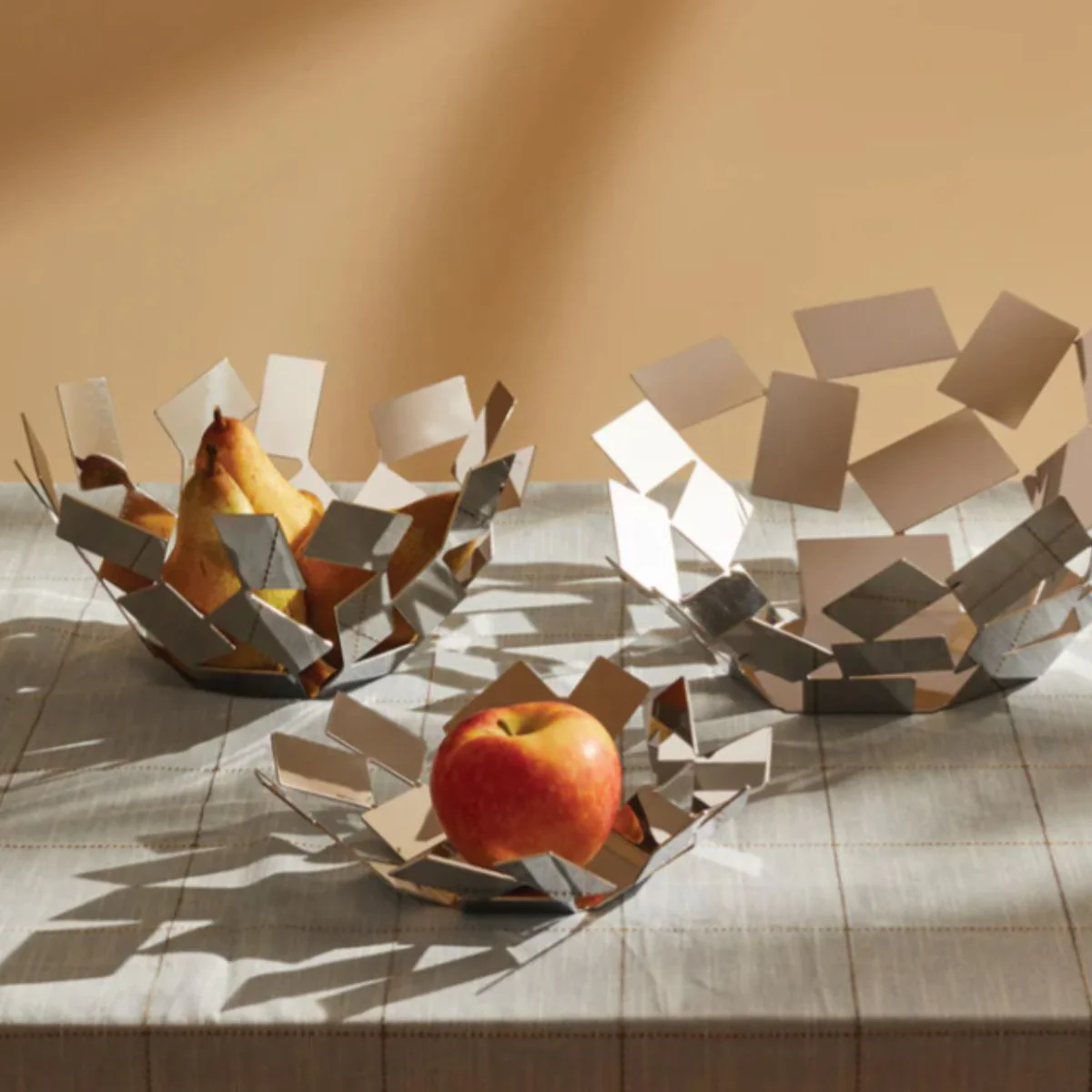 - Frutero de acero con formas geométricas