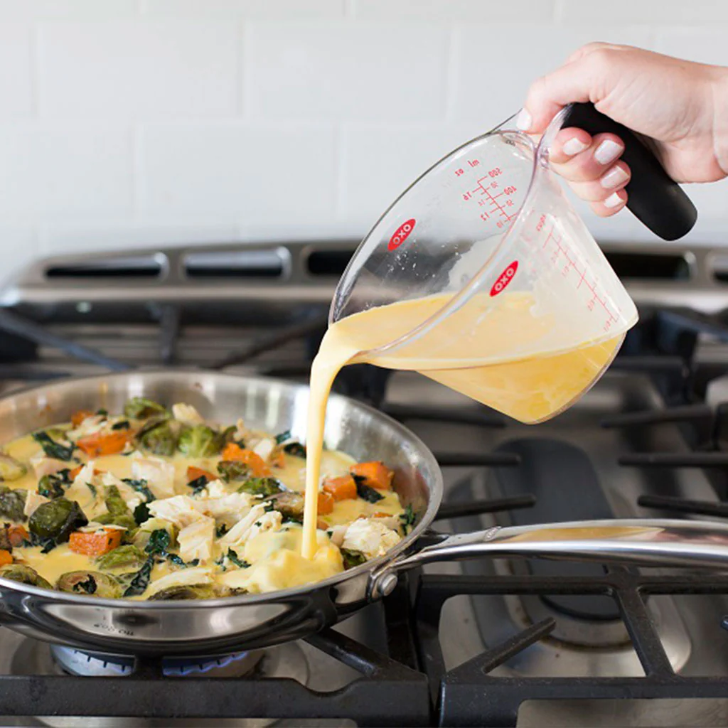 La Jarra medidora OXO es un accesorio imprescindible en la cocina. Ya sea para medir, mezclar, batir o dosificar, este práctico ayudante es ideal para facilitarte la elaboración de tus recetas dulces y saladas. Con su sistema patentado de lectura vertical inmediata, la escala medidora se muestra visible desde cualquier posición, lo que te ayuda a ganar tiempo y te evita tener que agacharte. ¡Todo un acierto!