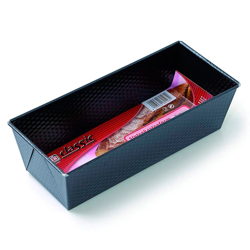El molde está fabricado en acero al carbono con revestimiento antiadherente. Se trata de un molde rectangular antiadherente perfecto para preparar bizcochos, krokes, pan de molde, pasteles salados… ¡Y todo lo que se te ocurra!
