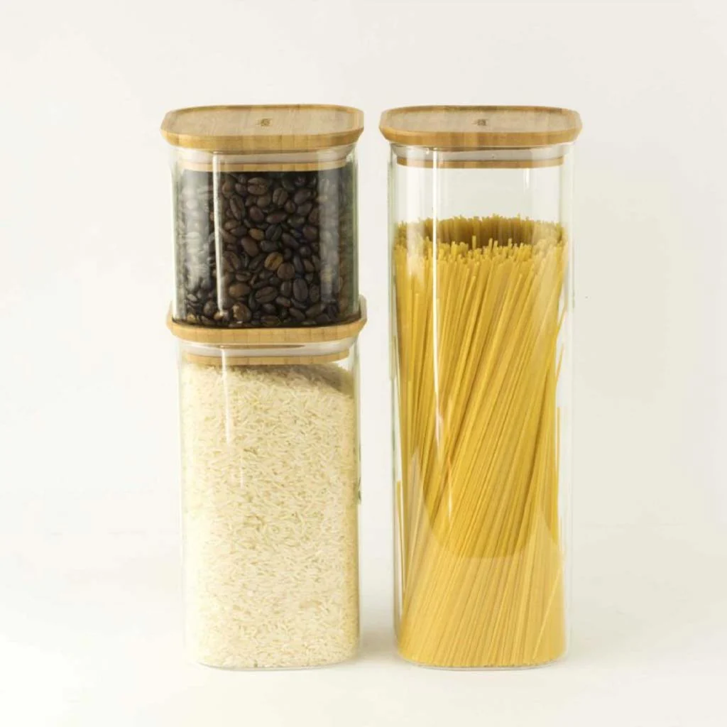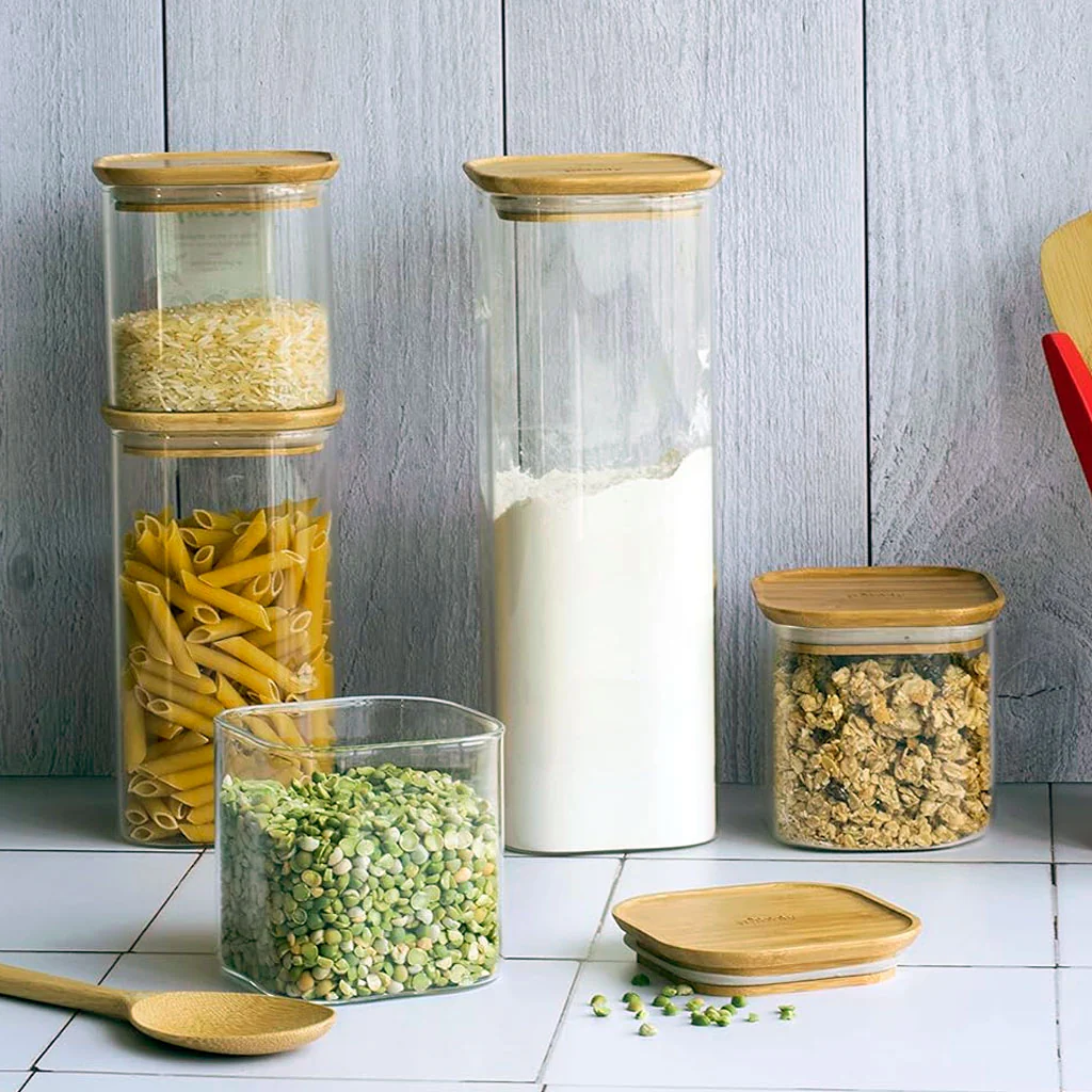 Por qué nos gustan los Recipientes altos de cristal con tapa de bambú de Pebbly