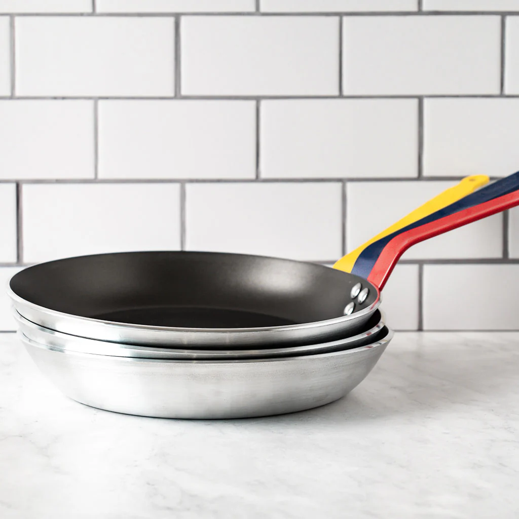 En casa puedes hacer lo mismo y elegir tus sartenes con los mangos de diferente color para destinarlas a cocinar en cada una únicamente huevos, carne roja o blanca, pescado, o verduras. O simplemente, elegir la sartén con el color del mango que más te guste o la que prefieras tener en tu cocina.