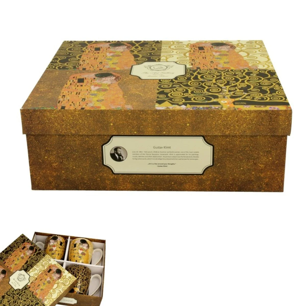 - No solo son unas tazas para bebidas calientes bonitas, sino que son verdaderas obras de arte. De hecho, se inspiran en obras de arte mundialmente conocidas del pintor Gustav Klimt.