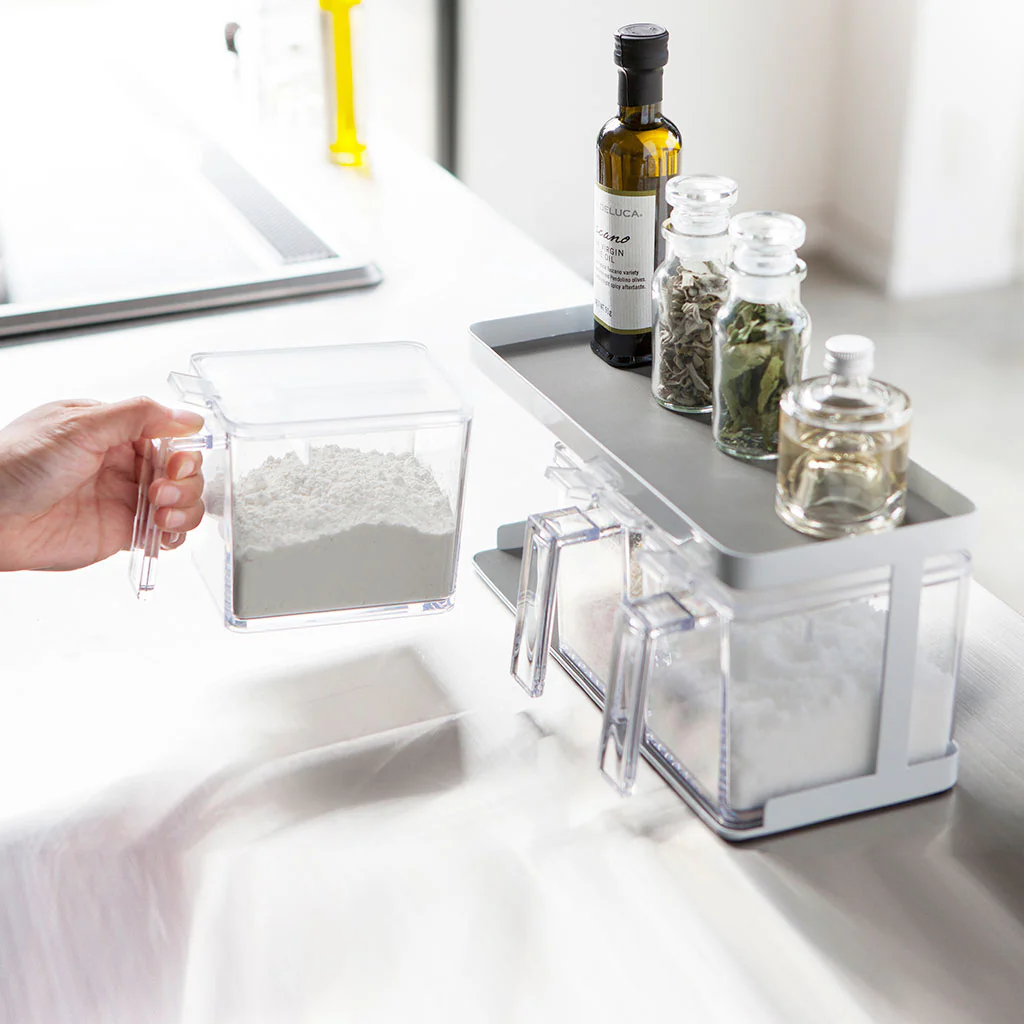 El Set de 3 botes con soporte Yamazaki es la solución ideal para mantener tus ingredientes más recurrentes en la cocina perfectamente organizados y siempre a mano. El set incluye 3 recipientes con una capacidad de 650 ml, perfectos para almacenar hasta 0,6 kg de ingredientes secos.