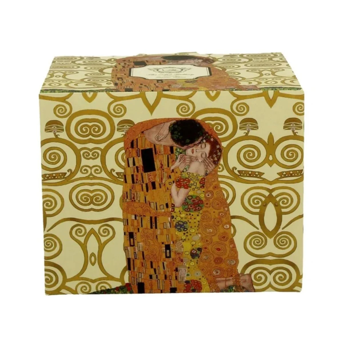 - The Kiss. Nosotros también besaríamos a esta taza ¡con lo bonita que es! Su diseño está inspirado en la famosa obra «The Kiss» de Gustav Klimt. El pintor hizo este cuadro entre los años 1907-1908.