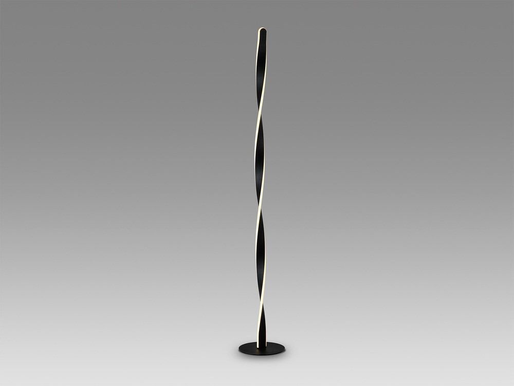 Lámpara de pie Twist en acabado negro mate, realizada en metal de alta calidad. Cuenta con un difusor de silicona opal que proporciona una iluminación uniforme y cálida, ideal para crear ambientes acogedores. Su potencia de 40W ofrece 2600 lúmenes en una temperatura de color de 3000K, perfecta para iluminar salones, dormitorios o espacios de lectura. Diseño elegante y moderno que combina funcionalidad y estilo.