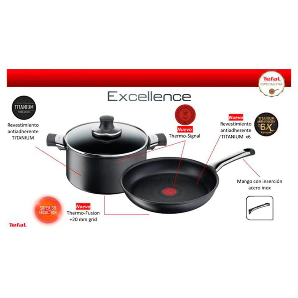 - Amplia superficie y gruesa base Thermo-Fusion+ que garantiza un rápido y uniforme calentamiento de toda la sartén, para una cocción homogénea de los alimentos y un mayor ahorro energético.