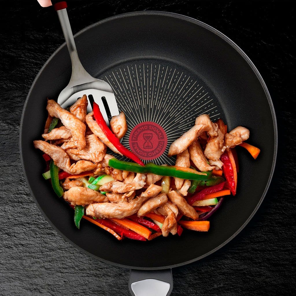 Su nueva tecnología Thermo-Signal será tu mejor aliada para indicarte cuándo añadir los ingredientes para empezar a cocinar. Con un diseño contemporáneo y la garantía de un gran rendimiento, este wok es una pieza perfecta para cocinar todas tus recetas.
